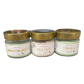 Contém 3 unidades: Aromas Arruda e Sal Grosso, Palo Santo e Citronela.