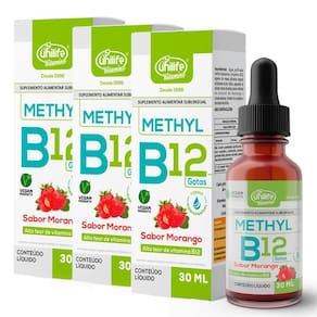 A Vitamina B12 Methyl em Gotas Unilife Sabor Morango 30 ml é um suplemento alimentar desenvolvido com ingredientes cuidadosamente selecionados para garantir qualidade e pureza. O produto contém metilcobalamina Vitamina B12 e água purificada, proporcionando uma opção prática para complementar a alimentação diária. Ingredientes Água purificada, metilcobalamina Vitamina B12 , agente de massa glicerina vegetal, acidulante ácido cítrico, regulador de acidez citrato de sódio, aroma idêntico ao natural de morango e conservantes sorbato de potássio e benzoato de sódio Informações adicionais Não contém glúten Produto vegano Modo de uso Sugere-se a ingestão de 1 gota ao dia, colocada sob a língua e ingerida em jejum. Agite bem antes de usar. Refrigerar após aberto. Informação nutricional Cada porção de 0,5 ml 1 gota contém 2,4 mcg de Vitamina B12, correspondendo a 100% da necessidade diária recomendada. Armazenamento Manter em local seco e fresco, ao abrigo da luz e umidade. Após aberto, consumir dentro do prazo de validade indicado na embalagem. Marca: Não Informado Ean: 7908609529041