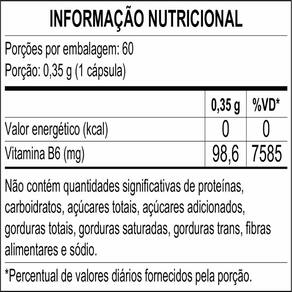 Kit 3 Vitamina B6 Apisnutri 98,6mg 60 Cápsulas Sobre o produto Desempenhando papel importante para a saúde, a piridoxina pode ser encontrada em carnes vermelhas, fígado, frango, peixes, leite, ovos, germe de trigo, soja, arroz, banana, couve-flor, brócolis, milho, aveia, etc. Atua na criação das células do sistema imune, formação dos glóbulos vermelhos, metabolismo de gorduras, carboidratos, proteínas e do glicogênio, na síntese do aminoácido cisteína e na fisiologia da homocisteína, a vitamina B6 é essencial para a produção de energia. Modo de usar Ingerir 1 cápsula ao dia. Recomendação de uso: 19 dezenove anos ou acima. este produto não é um . não exceder a recomendação diária de consumo indicada na embalagem. mantenha fora do alcance de crianças. gestantes e lactantes, somente devem consumir este produto sob orientação de nutricionista ou médico. Manter a embalagem bem fechada e em local seco e fresco. Não expor a luz solar. Após aberto consumir em até 90 dias. Isento de registro no M.S. Conforme RDC 240/2018. Apresentação Classificação: Suplemento alimentar de Cloridrato de Piridoxina em cápsulas Quantidade de cápsulas: 60 cápsulas de 350mg Peso Líquido: 18g