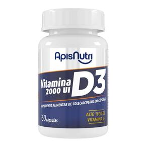 Kit 3 Vitamina D3 Colecalciferol 2000UI Apisnutri 60 cápsulas Também denominada Colecalciferol, a principal fonte dessa substância é o sol, responsável por cerca de 80% de toda Vitamina D que recebemos; mas também podemos encontrá-la no óleo de fígado de bacalhau, sardinha, gema de ovo, fígado bovino e de galinha, leite integral e derivados.