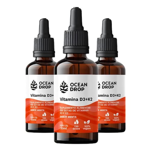 Kit 3 Vitamina D3 + K2 em Gotas Ocean Drop 30ml Sabor Menta Vitamina D3 + K2 em Gotas Ocean Drop 30ml Sabor Menta é um suplemento em gotas que combina as vitaminas D3 e K2 em uma formulação prática e saborosa. Ideal para quem busca complementar a dieta com esses nutrientes essenciais. A versão em gotas facilita a dosagem, oferecendo uma opção conveniente e eficaz para o uso diário. Ingredientes: Vitamina D3 Vitamina K2 Aromatizante natural de menta Sugestão de uso: Consumir a dosagem recomendada ao dia, ou conforme orientação. Informações importantes: Produto vegano, livre de glúten e derivados de origem animal. Não recomendado para gestantes, lactantes ou crianças. Este produto não é um . Marca: Não Informado
