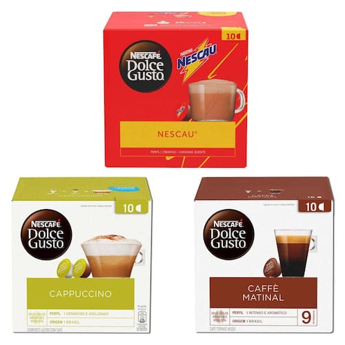 INGREDIENTES CAPPUCCINO: Cápsula escura: Café torrado e moído. NÃO CONTÉM GLÚTEN. Cápsula clara: Leite em pó integral, açúcar e emulsificante lecitina de soja. ALÉRGICOS: CONTÉM DERIVADOS DE LEITE E SOJA. PODE CONTER TRIGO, CEVADA E AVEIA. CONTÉM LACTOSE. CONTÉM GLÚTEN.