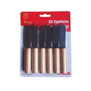 Unidades no Kit: 30 Espátulas Tamanho Total da Espátula: 11 cm Tamanho do Cabo de Madeira: 5,5 cm Material de Fabricação: Aço Inox e Madeira