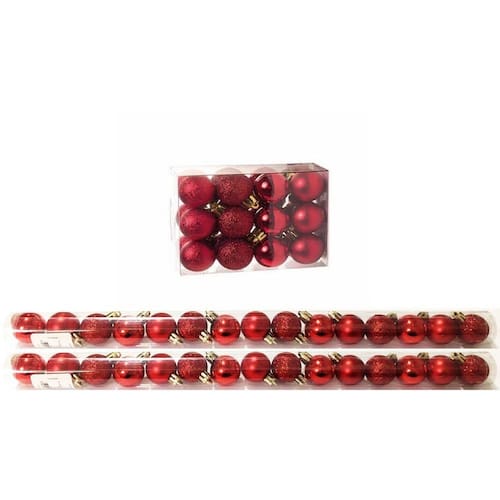 -30 Bolas mista vermelhas 3cm de diâmetro