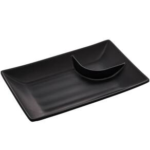 Kit 30 Pratos para Sushi com Molheira Melamina Pretos 19x12,5cm Lyor Tóquio Retangulares.