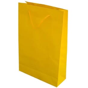 30 Sacolas De Papel Amarela. Sacolas de papel para lembrancinha de festa, sacolinha surpresa, transporte de chocolates, perfumes, roupas, papelaria, brinquedos e presentes em geral. 30 unidades. Sacolinhas produzidas em papel 90 gramas. Já vem montada, pronta para uso, com alças de nylon e fundo reforçado em papel cartão 190 gramas, ficam super resistentes. Medidas 25cm altura x 17cm largura x 6cm profundidade lateral . Não personalizamos.
