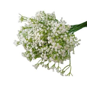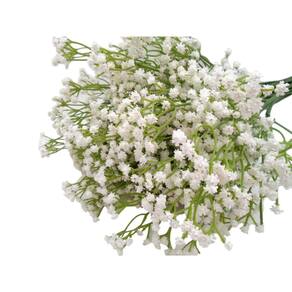Usada como base para todo tipo de arranjo floral, a gypsophila artificial não precisa ser sempre a coadjuvante das decorações. Quando usada de forma criativa a flor se torna a estrela principal de lindos arranjos. Mais conhecida como mosquitinho artificial a flor não precisa ser, necessariamente, misturada a outras variedades. A delicadeza das flores miúdas ajuda a compor cenários românticos, em clima de sonho.