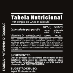 Conhecido como a vitamina do Sol, a vitamina D é essencial para sua saúde. Está associada a diversos benefícios, desde a imunidade, aumentando a percepção, até a saúde óssea e sensação de bem estar. Sua suplementação garante a reposição adequada, atingindo o nível necessário para que seu organismo enfrente melhor sua maratona diária.