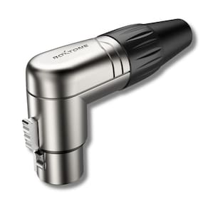 Fêmea XLR de ângulo direito de 3 pólos, caixa niquelada