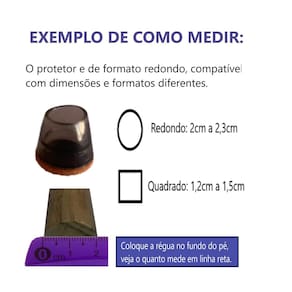 A cor real pode variar ligeiramente da imagem devido a diferentes configurações de monitor e iluminação. Pode haver uma variação de 1 a 3 mm nas medidas devido à medição manual. Especificações: O protetor é feito de silicone flexível, adaptando-se a diferentes formatos e dimensões dos pés dos móveis.