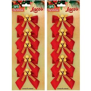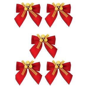 7 Kit Com 5 Laços Decorativo Vermelho E Dourado 9cm;