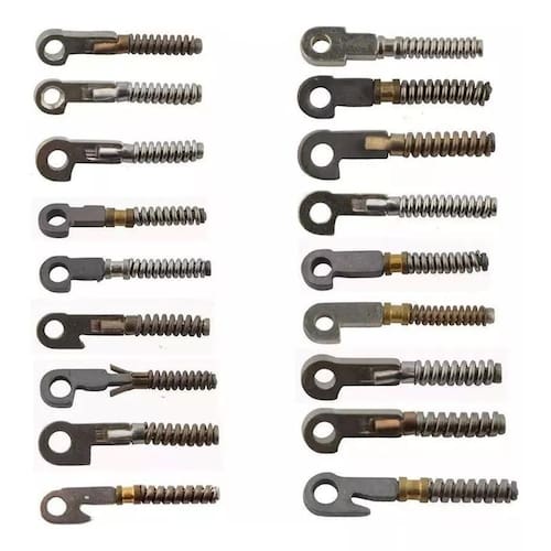 Composto por diferentes modelos, este kit oferece uma variedade de molas para atender às necessidades mais comuns de conserto de óculos. Inclui 100 molas MD 210 de 1,4 mm, 50 molas MD 210 de 1,2 mm, 40 molas MD 210 finas, 20 molas MD 210-82, 20 molas MD 219, 30 molas MD 220, 20 molas MD 215, 20 molas anzol de alumínio e 30 molas anzol finas. Além disso, também conta com 20 molas MD Ana Hickmann.