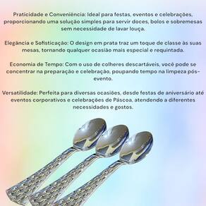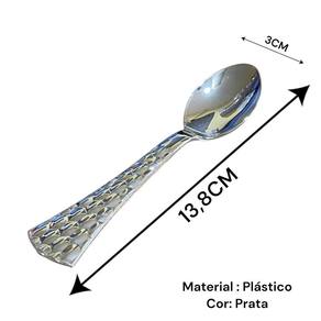 Contém: 36 unidades de Colher Prata Plástico Descartável 13,8cm