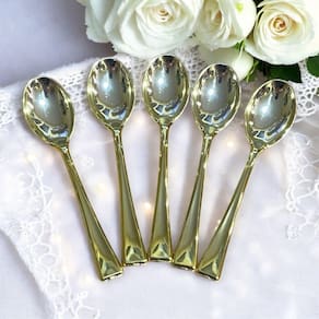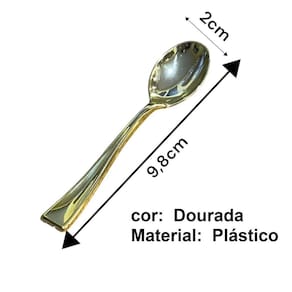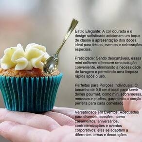 Contém: 36 unidades Mini Colher Dourada Plástico Descartável 9.8cm