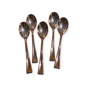 Contém: 36 unidades Mini Colher Rose gold Plástico Descartável 9.8cm