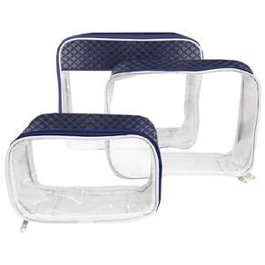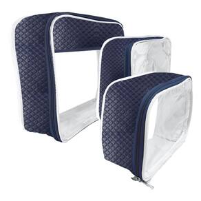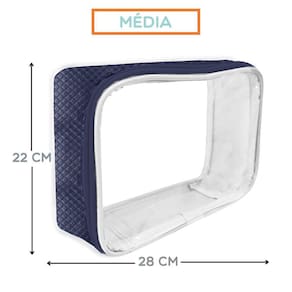 Kit Organizador Para Malas – 3 Peças – Azul Marinho Feito para organizar a mala maternidade, malas para passeios e viagens do bebê da melhor forma possível, os tamanhos são essenciais para organização, a transparência do plástico deixa organizado para as trocas de roupas do seu pequeno (a). Tamanho perfeito, ótima costura, não solta tinta, plástico super reforçado. Resistente, durável e impermeável, amplo espaço para melhor armazenamento, prático e higiênico de todos os itens do bebê, fechamento em zíper. Alguns dos principais benefícios do Kit Organizador Para Malas: Mais organização: o kit ajuda você a organizar suas roupas, acessórios e outros itens pessoais dentro da mala, o que facilita a localização do que você precisa. Mais espaço: o kit ajuda você a aproveitar melhor o espaço da sua mala, o que pode ser útil se você estiver viajando com pouco espaço. Mais proteção: o kit ajuda a proteger suas roupas, acessórios e outros itens pessoais de danos, como dobras, arranhões e manchas. Mais higiene: o kit ajuda a manter suas roupas, acessórios e outros itens pessoais limpos, o que pode ser útil se você estiver viajando para lugares com clima quente ou úmido. Mais praticidade: o kit ajuda você a arrumar e desarrumar a sua mala mais rapidamente, o que pode ser útil se você estiver com pressa. Acabamento premium Matelassê Medidas dos Organizadores: Pequena: 26 cm X 16 cm X 7 cm Média: 30 cm X 26 cm X 8 cm Grande: 34 cm X 30 cm X 12 cm Composição do Produto: 80% PVC – 20% Poliéster Exclusivo Marca Best Sling