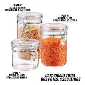 - Potes de mantimentos acrílico 3 unidades, produto de qualidade e resistência.