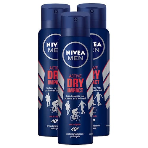 Desodorante Nivea Men Aerosol Dry Impact O que é? NIVEA MEN Desodorante Antitranspirante Aerossol Active Dry Impact é um desodorante masculino desenvolvido para oferecer proteção duradoura contra o suor e mau odor. Ele garante sensação de pele seca por até 72 horas, além de ser dermatologicamente testado para oferecer conforto e proteção para a pele. Para que serve?  Regula a transpiração excessiva, combatendo o suor e os odores, ao mesmo tempo que proporciona proteção antibacteriana e 0% de álcool. Sua fórmula é ideal para quem busca conforto para o uso diário. Benefícios e diferenciais: -Sensação confortável e seca - Não contém álcool etílico - Proteção antibacteriana - 72h de proteção - Dermatologicamente testado - NIVEA MEN Desodorante Antitranspirante Aerossol Active Dry Impact oferece proteção eficaz por 72 horas contra suor e mau odor, proporcionando sensação de pele seca e confortável. Dermatologicamente testado, é ideal para todos os tipos de pele. ? MODO DE USO Aplicar a 15 cm de distância das axilas. Espere secar antes de se vestir. Em caso de funcionamento anormal da válvula, vire o frasco para baixo e agite bem. PREOCAUÇÕES Usar somente nas axilas. Não usar se a pele estiver irritada ou lesionada. Caso ocorra irritação e/ou prurido no local da aplicação, suspender o uso imediatamente e procurar orientação médica. Evite a inalação deste produto. Proteger os olhos durante a aplicação. Perigo: Aerossol extremamente inflamável. Recipiente sob pressão: risco de explosão sob a ação do calor. Manter afastado do calor, superfícies quentes, faísca, chama aberta e outras fontes de ignição. Não fumar. Não pulverizar perto do fogo ou outra fonte de ignição. Não perfurar, nem incinerar, nem queimar, mesmo após utilização. Manter ao abrigo da luz solar. Não expor ao sol nem a temperaturas superiores a 50°C. Manter fora do alcance de crianças. Somente a embalagem vazia pode ser reciclada INGREDIENTES Butane (Butano), Isobutane (Isobutano), Propane (Propano), Isopropyl Palmitate (Palmitato de Isopropila), Aluminum Chlorohydrate (Cloroidróxido de Alumínio), Dicaprylyl Ether (Dicaprilil Éter), Caprylic/Capric Triglyceride (Triglicerídeo Caprílico/Cáprico), Aluminum Sesquichlorohydrate (Sesquicloroidrato de Alumínio), Magnesium Aluminum Silicate (Silicato de Magnésio Alumínio), Octyldodecanol (Octildodecanol), Persea Gratissima Oil (Óleo de Persea Gratissima), Disteardimonium Hectorite (Hectorita Diesteardimônio), Propylene Carbonate (Carbonato de Propileno), Tocopherol (Tocoferol), d-Limonene (dextrolimoneno), Linalool (Linalol), Geraniol (Geraniol), Citronellol (Citronelol), Eugenol (Eugenol), Alpha-Isomethyl Ionone (Alfa-Isometil Ionona), Citral (Citral), Parfum (Perfume)