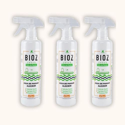 Kit 3X: Água de Passar Roupa Biodegradável Alecrim BioZ Green 470ml A Água de Passar Roupa Biodegradável Alecrim BioZ Green foi elaborado para facilitar o deslize do ferro de passar.