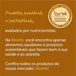 Sobre a Boomi: A Boomi é um mercado online com produtos saudáveis e sustentáveis, que fazem bem à saúde e ao planeta. São mais de 1.800 produtos de 100 pequenas marcas para você Nascemos pequenos, mas com um propósito gigante: conectar pessoas a produtos acessíveis que tragam benefícios para a saúde, para o planeta e para a sociedade. Para isso, buscamos ofertar produtos de pequenos agricultores e pequenas empresas em um mundo cada vez mais veloz e que busca mais produtividade. Vamos sempre buscar levar o melhor para você Nosso propósito é conectar alimentos saudáveis e produtos naturais e sustentáveis a pessoas preocupadas com a sua saúde e com a saúde do planeta. Com preço justo, comodidade e informações confiáveis. Curadoria: Nossos produtos são criteriosamente validados pela nossa curadoria de produtos saudáveis, que busca produtores e empresas que compartilham do nosso alto padrão de qualidade. Da enorme lista de ingredientes banidos à preocupação do bem estar animal, desde o primeiro dia seguimos fieis aos nossos valores, trabalhando com transparência e práticas sustentáveis. Vendemos apenas produtos que admiramos e que nos orgulha.