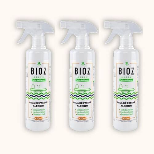 Kit 3X: Água de Passar Roupa Biodegradável Alecrim BioZ Green 470ml A Água de Passar Roupa Biodegradável Alecrim BioZ Green foi elaborado para facilitar o deslize do ferro de passar.