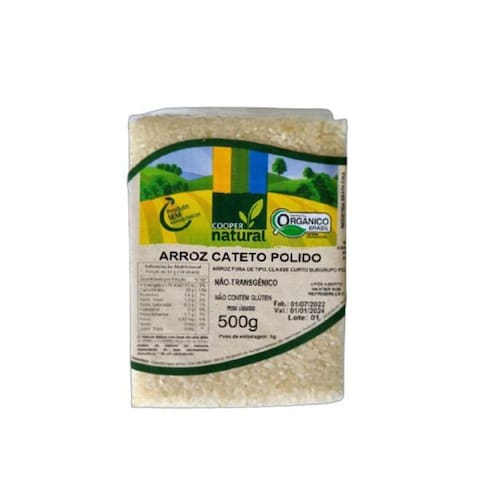 Kit 3X: Arroz Cateto Polido Orgânico Coopernatural 500g O Arroz Cateto Polido Orgânico Coopernatural também é chamado de grão curto polido ou japonês. É um excelente produto para o preparo de arroz com galinha, carreteiro ou arroz de leite.