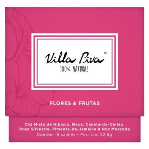 Feito de ingredientes 100% naturais, o chá misto flores e frutas villa piva é composto por um blend de hibisco, maçã, canela do ceilão, ros silvestre, pimenta da jamaica e noz moscada.