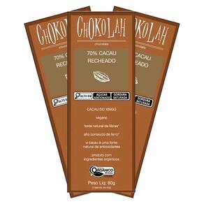 Kit 3x: chocolate 70% cacau recheado orgânico chokolah 80g