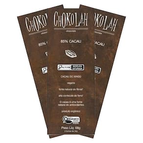 Kit 3x: chocolate 85% cacau com açúcar demerara orgânico chokolah 68g