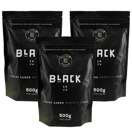 - 3x Erva Mate Tereré Black Erva 500g Sabor Menta E Limão