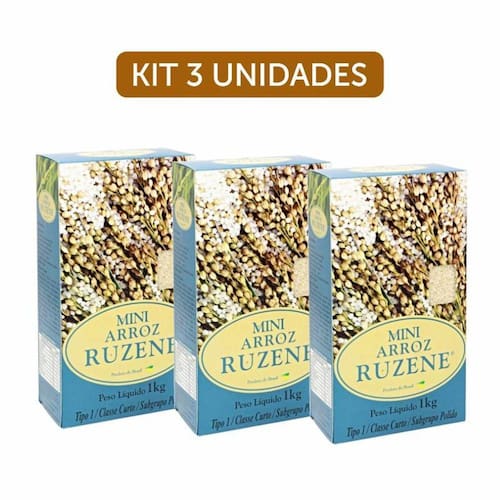 Kit 3X: Mini Arroz Integral Curto Ruzene 1Kg