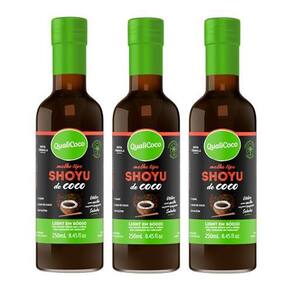 Kit 3X: Shoyu de Coco Qualicoco 250ml O Shoyu de Coco Qualicoco é um produto derivado do coco que serve como uma alternativa ao shoyu tradicional à base de soja. Possui um perfil de sabor mais doce e levemente frutado. O Shoyu de Coco Qualicoco pode ser incorporado em diversas receitas para dar um toque de sabor asiático e tropical, sendo uma opção versátil na culinária, também pode ser utilizado como ingrediente em marinadas para carnes, peixes, tofu e vegetais, é uma opção para criar molhos para saladas, stir-fry e diversos pratos. Ingredientes: Água, açúcar de coco, vinagre de álcool e sal. NÃO CONTÉM GLÚTEN. Sobre a marca: A Qualicoco nasceu em 1992, em Santo Antônio da Patrulha-RS, com capacidade produtiva e de atendimento comercial a todas as Regiões do Brasil. Somos especialistas em Produtos Industrializados e Naturais, com a tradição de quem extrai o melhor que vem dos nossos Coqueirais Queremos contribuir para sua alimentação mais saudável, por isso investimos crescentemente em tecnologia, controle de qualidade e nas nossas pessoas, garantindo o fornecimento de alimentos nutritivos e cheios de sabor. Da Água ao Óleo de Coco, do Chips ao Cacau em Pó ou da ao Dendê, a QualiCoco quer fazer parte da sua Alimentação, afinal comer bem é viver melhor Sobre a Boomi: A Boomi é um mercado online com produtos saudáveis e sustentáveis, que fazem bem à saúde e ao planeta. São mais de 3.500 produtos de 150 pequenas marcas para você Nascemos pequenos, mas com um propósito gigante: conectar pessoas a produtos acessíveis que tragam benefícios para a saúde, para o planeta e para a sociedade. Para isso, buscamos ofertar produtos de pequenos agricultores e pequenas empresas em um mundo cada vez mais veloz e que busca mais produtividade. Vamos sempre buscar levar o melhor para você Nosso propósito é conectar alimentos saudáveis e produtos naturais e sustentáveis a pessoas preocupadas com a sua saúde e com a saúde do planeta. Com preço justo, comodidade e informações confiáveis. Curadoria: Nossos produtos são criteriosamente validados pela nossa curadoria de produtos saudáveis, que busca produtores e empresas que compartilham do nosso alto padrão de qualidade. Da enorme lista de ingredientes banidos à preocupação do bem estar animal, desde o primeiro dia seguimos fieis aos nossos valores, trabalhando com transparência e práticas sustentáveis. Vendemos apenas produtos que admiramos e que nos orgulha.