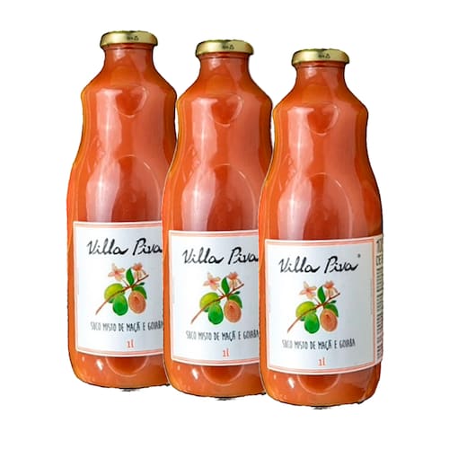 O Suco de Goiaba Integral Sem Açúcar Villa Piva é produzido somente com 2kg de goiaba por litro, sem elementos artificiais, corantes, açúcares ou conservantes.