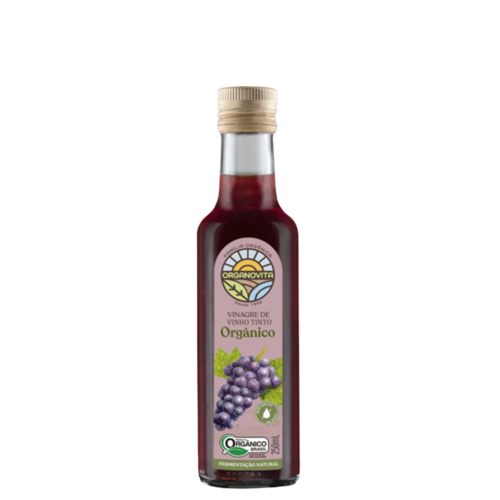 O Vinagre de Vinho Tinto Orgânico Organovita é elaborado a partir da fermentação natural do Suco de Uva Orgânico, que de forma gradual de transforma em vinho tinto pela ação das leveduras naturais presentes na fruta e no ambiente. Em seguida, pela ação das bactérias acéticas naturais do produto, o álcool é transforado em ácido acético obtendo-se assim o vinagre, totalmente sem aditivos.