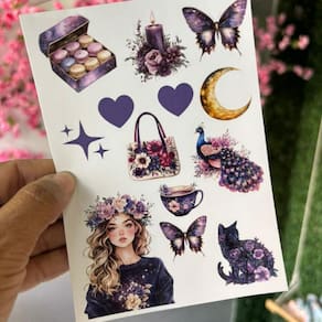 O kit acompanha 4 cartelas de adesivos, cada uma medindo 15 x 10,5 cm, com corte digital preciso, bordas limpas e impressão de alta qualidade — adesivos prontos para uso e com acabamento profissional.
