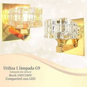 - Soquete: G9 - Tensão: Bivolt - Tipo de lâmpadas: Pode utilizar lâmpada LED ou halógena