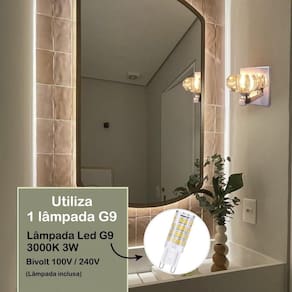 Arandela interna metal e cristal g9 lavabo banheiro quarto