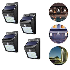 Kit 4 Arandela Lâmpada 30 Leds Luz Solar Com Sensor Noturno De Movimento Para Parede Muro Alpendre Caminho Jardim