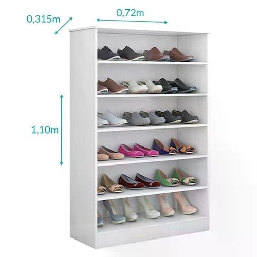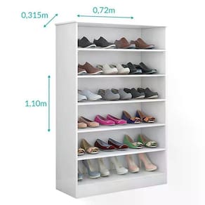 - Pode ser como sapateira acomodando até 18 pares de sapatos.