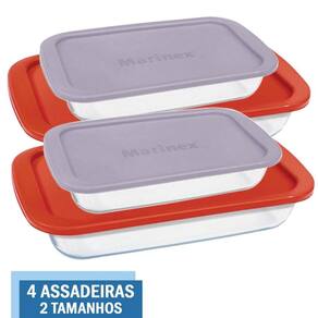 4 Assadeiras 2 de cada tamanho, 1,6 Litros e 2,9 Litros Retangular com Tampa Marinex Nadir Figueiredo