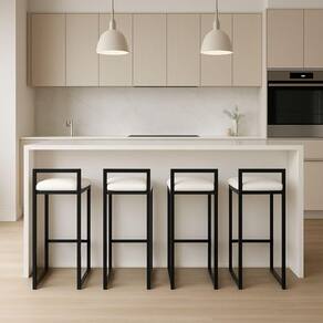 O assento em corino, além de elegante, oferece toque macio e fácil limpeza, tornando o dia a dia mais prático sem abrir mão do estilo. O design minimalista, com linhas retas e proporções equilibradas, se adapta perfeitamente a cozinhas gourmet, áreas de lazer e espaços corporativos modernos.