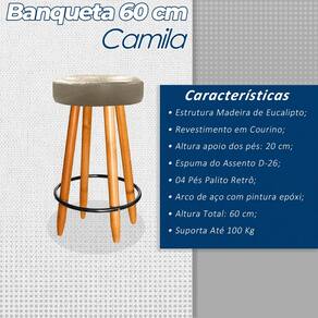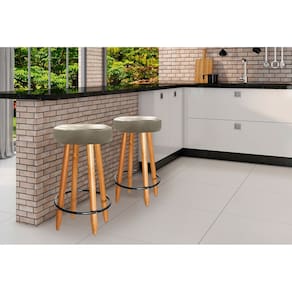 Características do Produto: - Base do assento e fundo Mdf e Mdp de 15MM; - Altura para apoio dos pés: 20 cm; - Altura do Assento: 10 cm; - Parte inferior acabamento em TNT preto; - Estrutura em madeira de eucalipto; - Arco em aço, com pintura especial epóxi; - Suporta uma pessoa até 100 kg; - Garantia 3 meses por nós fabricantes; - Formato Redondo; - Espuma do Assento D-23; - 4 Pés Palito Retrô; - 4 Chapas de Aço Galvanizado para fixação dos pés; Dimensões do produto montado: - Altura: 60 cm; - Largura: 37 cm; - Comprimento: 37 cm; Observações importantes: Para assegurar que sua banqueta mantenha sua durabilidade e beleza ao longo do tempo, siga estas recomendações: 1 - Limpeza: Use pano úmido com sabão neutro, evitando abrasivos. 2 - Proteção Solar: Evite sol direto para prevenir desgaste. 3 - Umidade: Seque imediatamente em caso de derrames. 4 - Uso Adequado: Respeite a capacidade de peso indicada e não faça movimentos perigosos em cima da banqueta. 5 - Manutenção: Inspecione periodicamente e limpe conforme instruções acima. 6 - Armazenamento: Local limpo e seco, protegido de poeira e umidade, não expor ao sol e chuva.