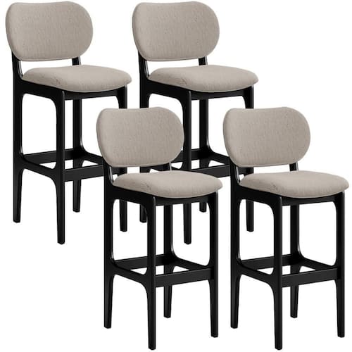 Amplamente sofisticado, o Kit 4 Banquetas Alta Bar Cozinha Sala Jantar Fixa Betta L02 Preto Linho Bege - Lyam Decor irá agregar ainda mais valor em sua decoração!! Sendo capaz de compor muito bem o ambiente, é produzido com materiais de excelente qualidade, a resistente estrutura em madeira de Taeda, na cor preto, conta com apoio para os pés (que garante maior segurança), além do assento e encosto estofados super confortáveis e convidativos, que são revestidos em tecido Linho, extremamente elegante.