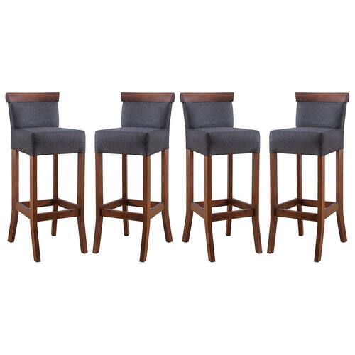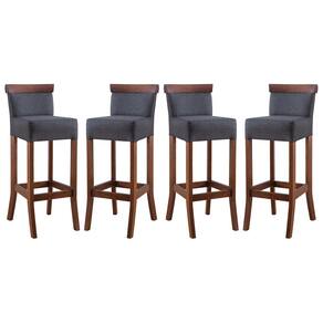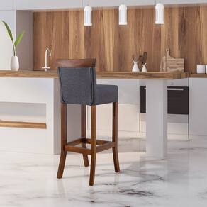 CARACTERÍSTICAS TÉCNICAS: - Produzida em Madeira Maciça Sustentável de Reflorestamento - Acabamento em Verniz na cor Imbuia - Encosto Estofado Preenchido com Espuma D18 - Assento Estofado Preenchido com Espuma D23 - Revestimento em Tecido Linho na cor Cinza L67 - Banqueta Entregue Montada - Kit Composto por QUATRO Banquetas