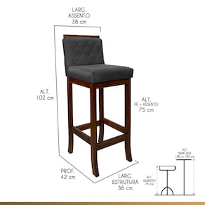 Apresentamos a banqueta Nice, feita com madeira maciça de reflorestamento e acabamento em verniz. Seu assento preenchido com espuma D26 e encosto com espuma D23 garantem conforto duradouro. O encanto adicional vem da costura matelassê no encosto, enquanto o revestimento em suede adiciona uma sensação de luxo. Adapta-se perfeitamente a qualquer espaço, adicionando elegância e conforto instantaneamente. CARACTERÍTICAS TÉCNICAS: - Produzido em Madeira Maciça de Reflorestamento; - Acabamento em Verniz na cor Castanho; - Assento Preenchido com Espuma D26; - Encosto Preenchido com Espuma D23; - Encosto com Costura Matelassê; - Revestimento em Suede na cor Cinza. *Indicada para Bancadas/Mesas com Alt. 100/105 cm. *PRODUTO ENVIADO MONTADO. INFORMAÇÕES TÉCNICAS: Altura Total: 102 cm Altura até Assento: 75 cm Altura até Travessa: 23 cm Altura Encosto: 35 cm Largura Assento: 38 cm Largura Estrutura: 36 cm Profundidade Total: 42 cm Profundidade Assento: 41 cm Peso: 7 kg *Kit Composto por 4 Banquetas Nice. INFORMAÇÕES ADICIONAIS:ATENÇÃO: Móvel produzido em madeira maciça natural podendo ocorrer mudança no tom da madeira conforme o produto;*Conferir se o produto está de acordo com o que comprou, produto danificado não será aceito troca;**As imagens ambientadas são meramente ilustrativas e podem apresentar itens que não compõe o produto. As cores do produto podem variar de acordo com o monitor, a iluminação do ambiente ou sua percepção visual;***Limpeza deve ser feita com pano macio e seco ou levemente umedecido com água e sabão neutro. Não devem ser utilizados abrasivos como palha de aço e objetos cortantes;Garantia para defeitos de fabricação conforme Código de Defesa do Consumidor. Marca: CCS Interiores