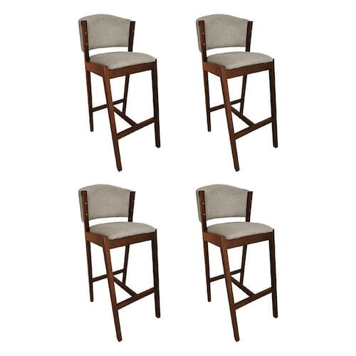AS IMAGENS SÃO MERAMENTE ILUSTRATIVAS E PODEM SOFRER VARIAÇÕES DE COR E PEQUENOS DETALHES DE ACORDO COM O SEU MONITOR, ILUMINAÇÃO DO AMBIENTE E ATÉ MESMO A SUA PERCEPÇÃO VISUAL.Kit 4 Banquetas Alta de Madeira MaciÃa Mel Premium Ana com Encosto Linho Bege