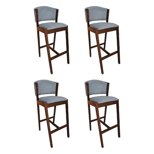 AS IMAGENS SÃO MERAMENTE ILUSTRATIVAS E PODEM SOFRER VARIAÇÕES DE COR E PEQUENOS DETALHES DE ACORDO COM O SEU MONITOR, ILUMINAÇÃO DO AMBIENTE E ATÉ MESMO A SUA PERCEPÇÃO VISUAL.Kit 4 Banquetas Alta de Madeira MaciÃa Mel Premium Ana com Encosto Linho Cinza