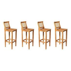 Kit 4 Banquetas Alta De Madeira Maciça Ripada Com Encosto Confort - Castanho - Cor: Marrom