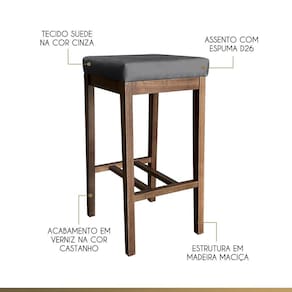 A Banqueta Alta Bali é a escolha perfeita para adicionar charme e elegância ao seu espaço. Fabricada com madeira maciça de alta qualidade, possui acabamento em verniz castanho, conferindo durabilidade e sofisticação. Seu assento preenchido com espuma D26 oferece conforto excepcional. O revestimento em suede na cor Cinza adiciona um toque de estilo e versatilidade, combinando facilmente com qualquer decoração. Além de sua beleza, a Banqueta Alta Bali também se destaca pela resistência e longevidade. Seja para bares, cozinhas ou áreas de entretenimento, essa banqueta é a escolha perfeita!