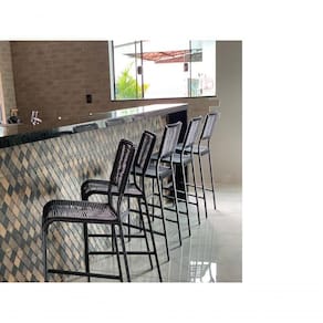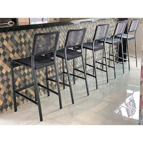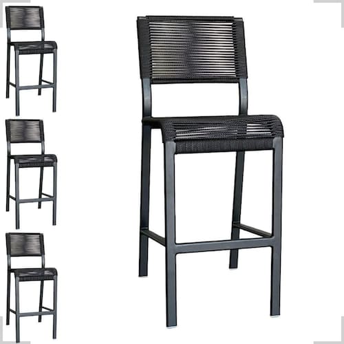 Quantidade de banquetas e bancos: 4 | Altura máxima: 105 | Unidade de Altura máxima: cm | Tipo de produto: Banqueta | Origem: | Estilo: Moderno | Material do assento: corda sintética | Materiais da estrutura: Alumínio | Material do estofamento: Corda Sintetica | Unidade de Profundidade: cm | Diâmetro: 0 | Unidade de Diâmetro: | Largura: 43 | Peso: | Unidade de Peso: kg | Peso máximo suportado: 150 | Unidade de Peso máximo suportado: kg | Quantidade de pés: 4 | Requer montagem: Não | Inclui almofada: | Com estofado: Não | Com altura ajustável: | Com rotação de 360 graus: | Com rodas: | Com apoio de braços: Não | Com espaço de armazenamento: | Com apoio de pés: Sim | Com encosto: Sim | Com tinta epóxi: Sim | Quantidade de caixas de embalagem: 1 | Inclui manual de montagem: | Profundidade: 38 | É dobrável: